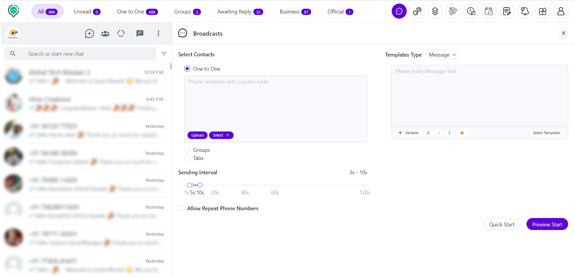 Bulk Broadcast/Messaging: Reach a large audience effortlessly with bulk messaging capabilities.